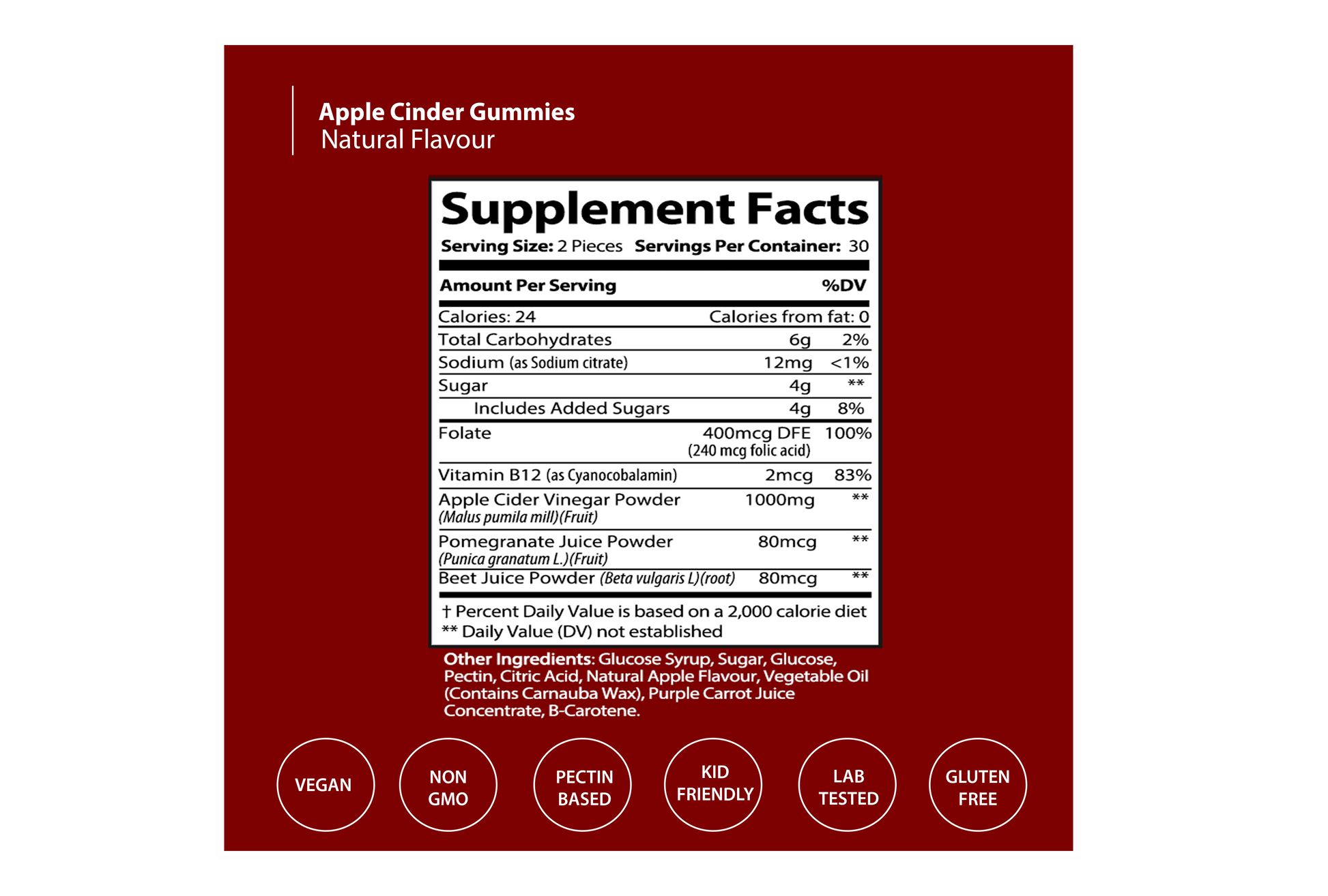 Organic and non-GMO ingredients: Our apple cider vinegar gummies are made with high-quality, organic ingredients that are free from genetically modified organisms (GMOs). This ensures that you're getting a pure and natural product that's good for your health.
