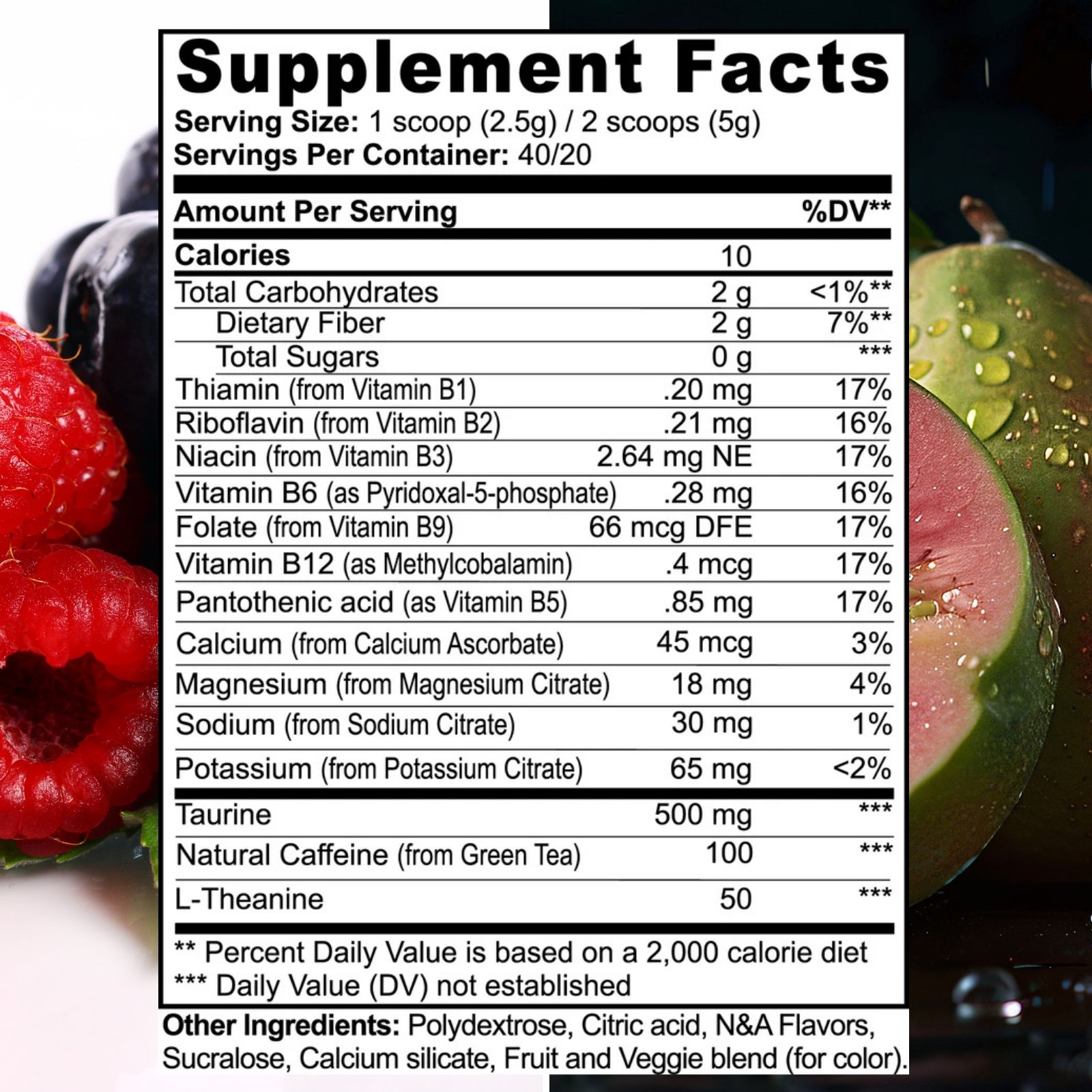 Transport yourself to a tropical paradise with our exotic Guava Berry Pre-Workout Powder. Each scoop delivers an exciting fusion of sweet tropical guava and vibrant mixed berries, crafted to turn your workout preparation into a refreshing escape.