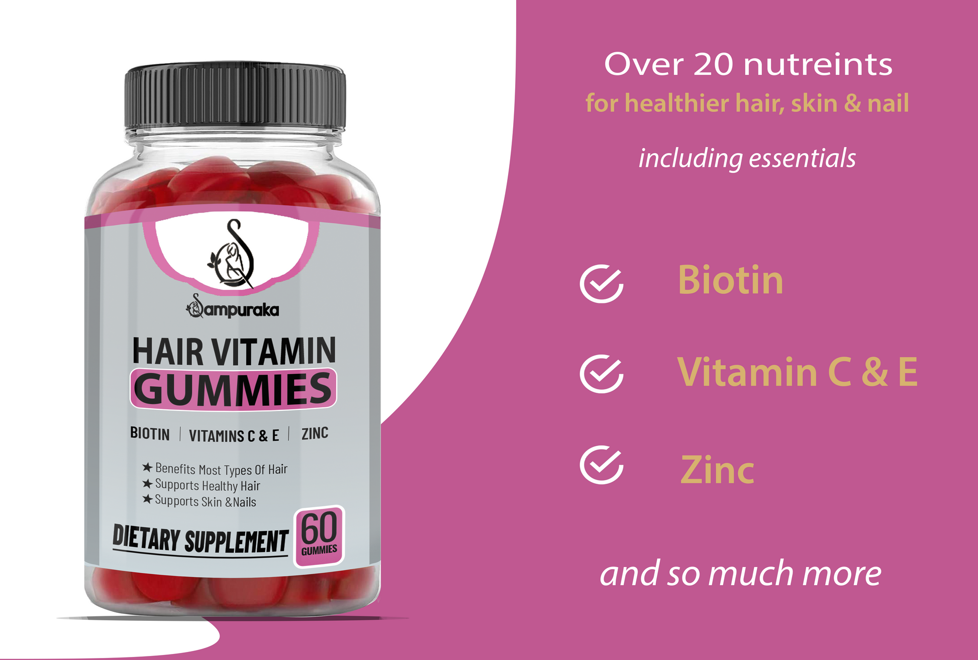 GOODBYE TO FACTORY PLASTIC GUMMIES - Factory plastic gummies for hairs and nails for women and men results in more harms than good to health. Through away those hard to swallow candies to enjoy healthy gummies with multivitamin. Find a perfect replacement for large capsules and tablets. Naturally Delicious with no artificial flavor.